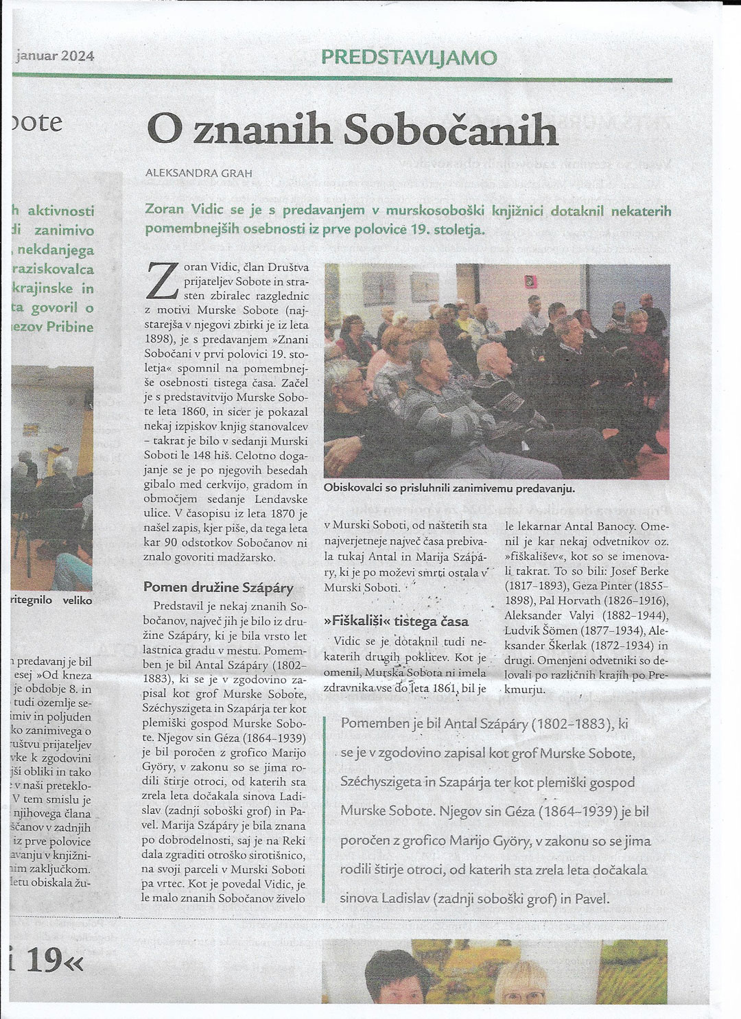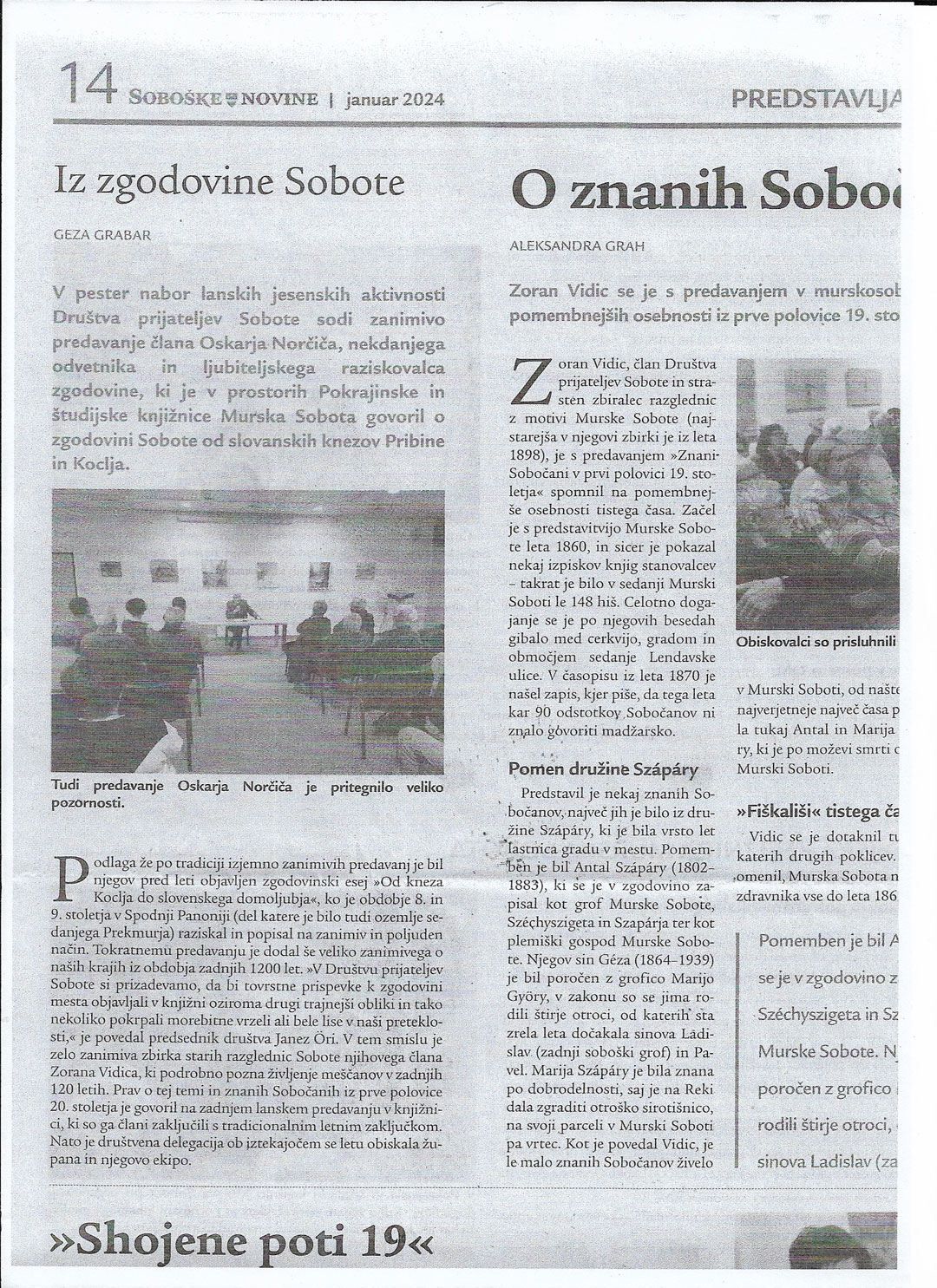 VABILO za predavanje g. Zorana Vidica: »Znani Sobočani iz prve polovice 2. stoletja« in »Druženje ob zaključku leta« (oboje 20.12.23 ob 16h v...